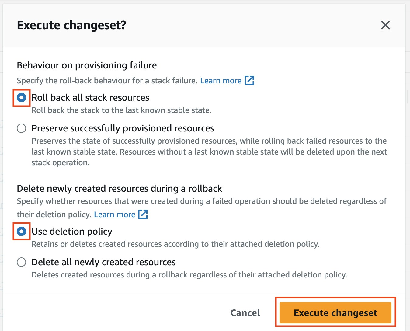 If you receive two deeplinks for two separate CloudFormation updates, apply them in this order: