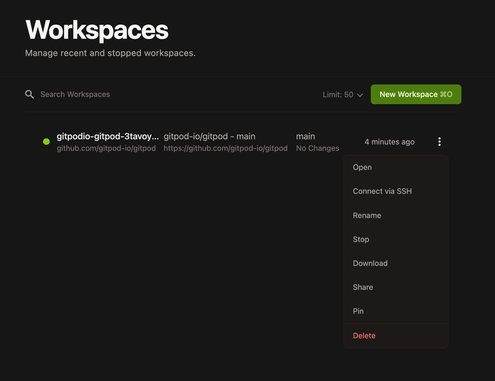 - Visit your workspace list in Gitpod