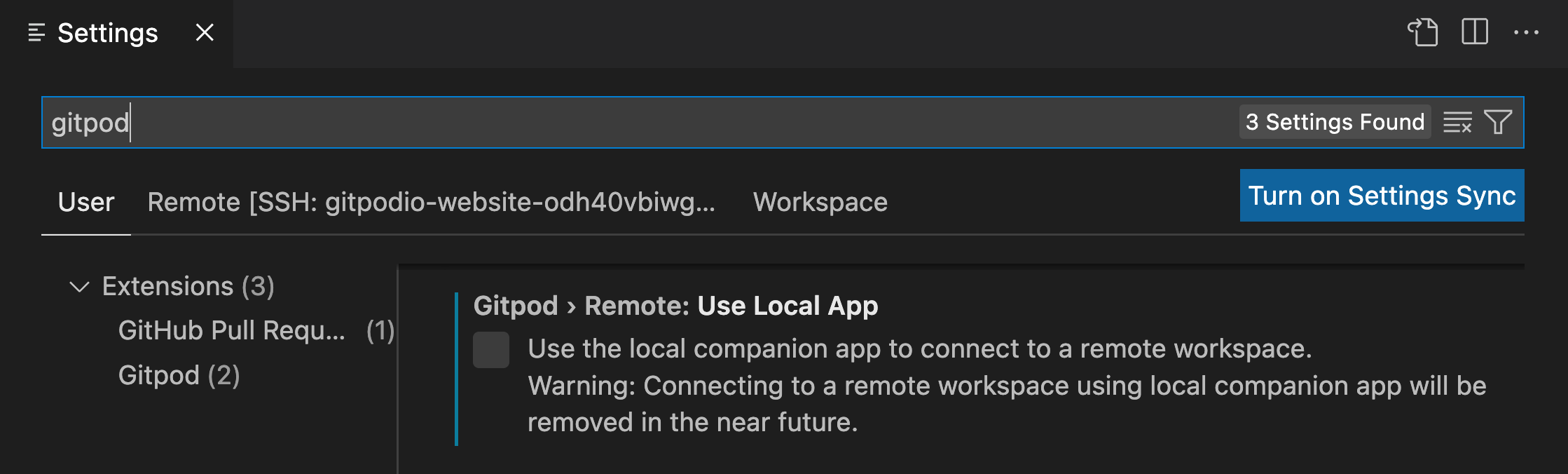 The VS Code Desktop Gitpod extension useLocalApp setting