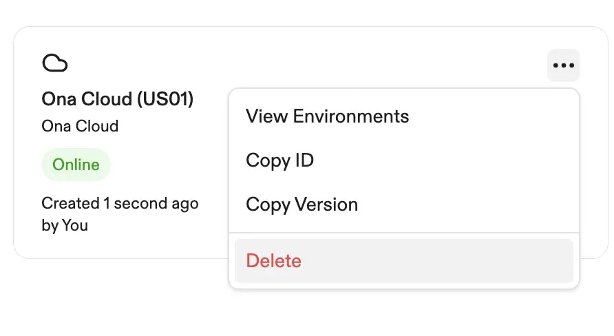 When creating a new environment:- Open the environment creation modal. Ona Cloud options will be marked as such