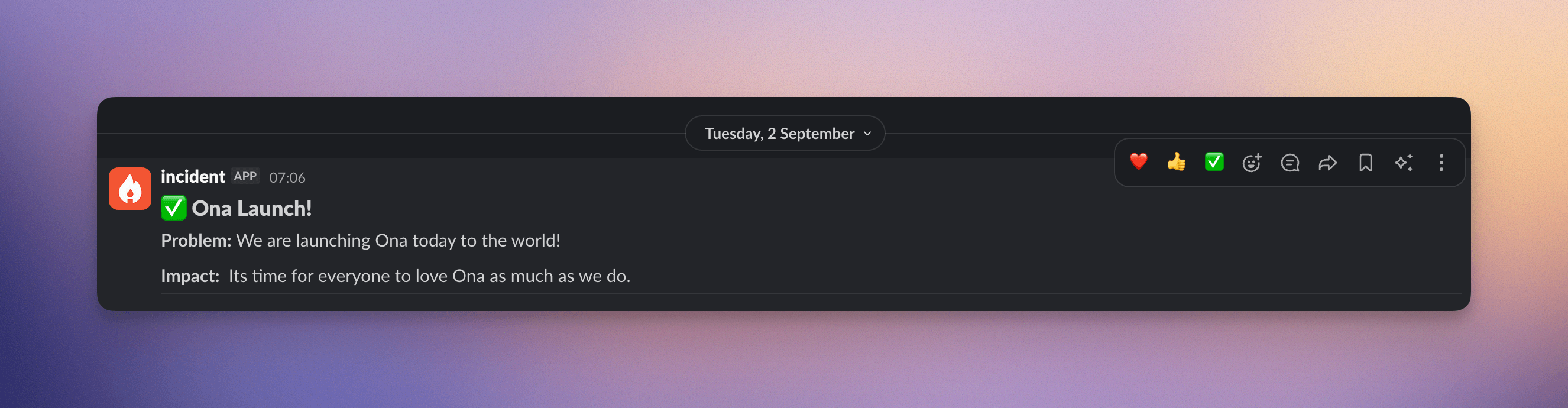 A couple of hours before the launch I ran a command that usually I dread running; I typed /icidentinto Slack and hit enter.