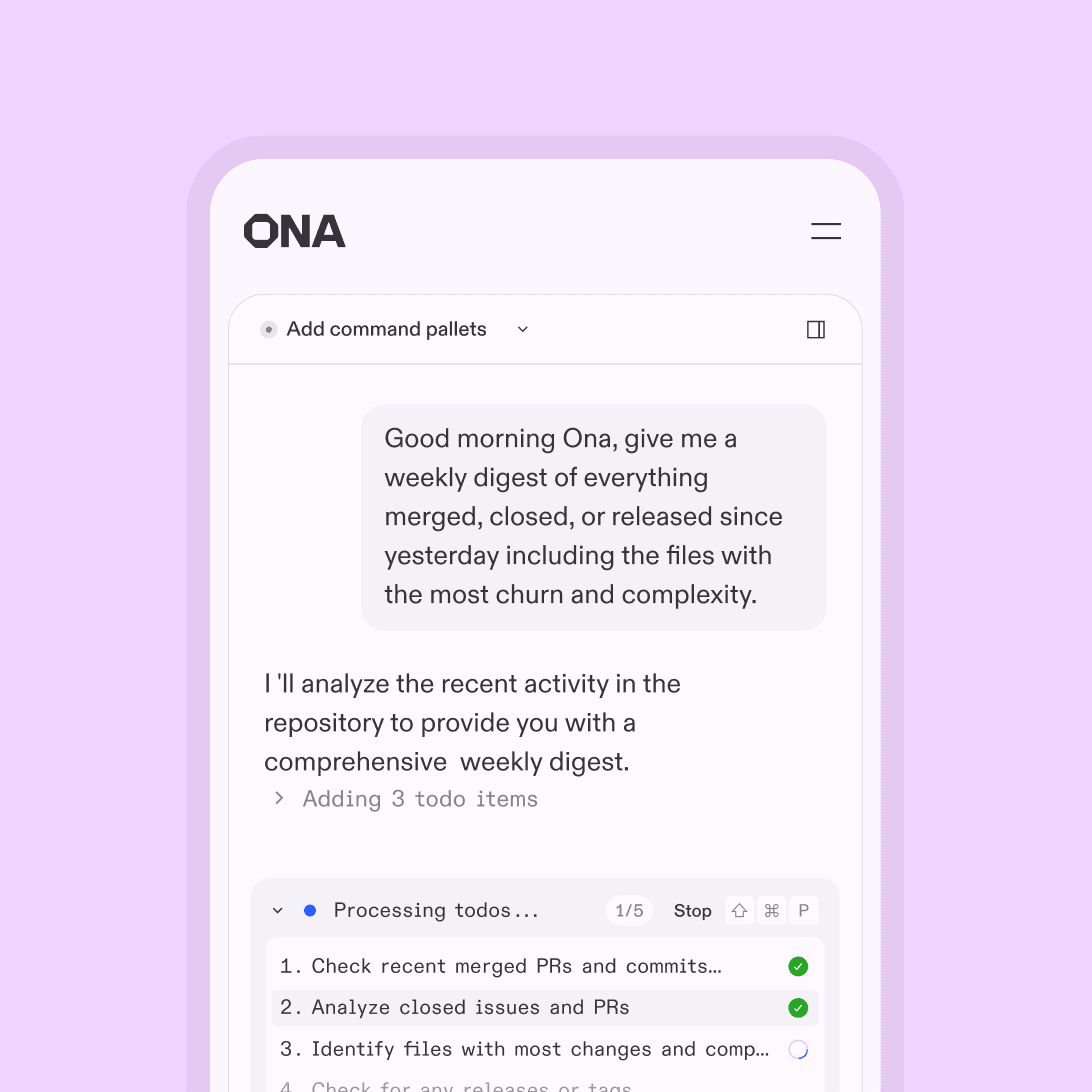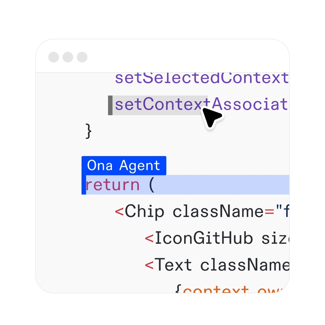 Ona can pull in context from your favorite tools: source control, issue trackers, coding assistants, editors, cloud providers and databases.